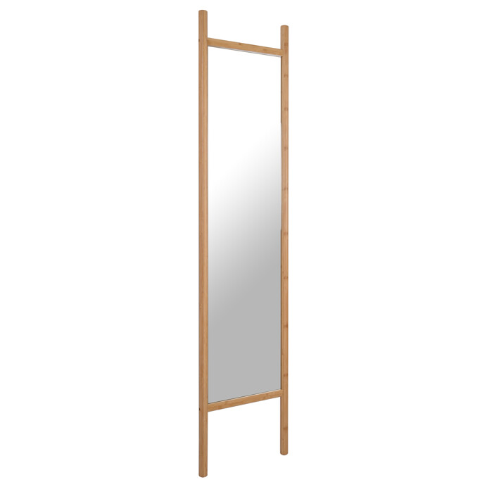 This wall mirror in a natural shade is crafted from solid bamboo, lending a warm and natural look to the piece. The clean and simple frame design highlights the smooth bamboo surface, allowing the mirror to complement various interior styles. The mirror panel is made of high-quality glass with excellent reflectivity, suitable for everyday use. Its tall dimensions of 40 × 180 cm provide ample space for full-body viewing while saving wall space. The lightweight design makes it easy to mount and adapt to spatial requirements.