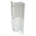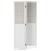 The three-part solid spruce wood screen in white offers a practical solution for dividing space or creating privacy in the interior. The solid frame body is complemented by a decorative interwoven PVC filling, which gives the screen an interesting visual effect and at the same time allows partial light transmission. Thanks to the three rotating parts, the screen can be easily adapted to different spatial requirements and arrangements. The black lacquer finish ensures resistance to normal wear and tear and easy maintenance. The dimensions and robust material guarantee stability and a long service life of the product. The dimensions of one part are 40 x 171 cm. The size of one piece is 40x171 cm.