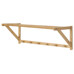 The wall-mounted shelf with hooks is made from solid bamboo in a natural shade, bringing a warm and pleasant atmosphere to any interior. The shelf provides practical upper space for storing small items or decorations, while the lower section features six sturdy hooks for hanging coats, hats, or bags. The bamboo finish is easy to maintain and the secure wall mounting ensures stability and long-lasting durability. The design with smoothly rounded edges and natural material texture emphasizes simplicity and functionality. Dimensions and load capacity meet common requirements for both home and office use.