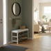 The shoe rack / bench 83168-13 WT by Autronic combines practical storage space with comfortable seating thanks to its padded seat upholstered in black eco-leather. The frame is made of metal with a white matte powder coating that ensures resistance to damage and long-lasting durability. Two chrome-plated shelves provide ample space for shoe storage, while their open design allows for effective ventilation and easy maintenance. The sturdy frame with reinforcements guarantees strength and safety when sitting, enhancing ergonomics and practicality in hallways or entryways. The overall design of the shoe rack is minimalist and easily integrates into various interior styles, with the white frame and black seat creating an elegant contrast. The bench's load capacity meets standard seating requirements and its dimensions are optimized for comfortable use even in smaller spaces.