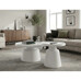 This set of two modern coffee tables combines functionality with style. Both tabletops are made of metal with a matte white finish that is durable and easy to maintain. The stable metal bases ensure strength and stability, while the decorative edges of the tabletops add a subtle detail to the overall look. The larger table measures 68.5 cm in diameter and 43 cm in height, while the smaller table has a diameter of 49 cm and height of 50.5 cm, allowing flexible arrangement in any space. The set suits modern interiors where simplicity and practicality of metal design are appreciated.